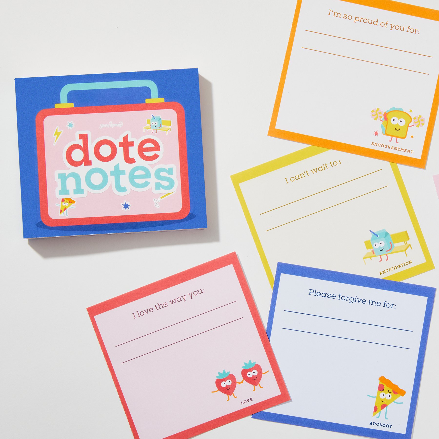 Designed 'Dote Notes' note pads for parents to share heartfelt messages with their kids.
